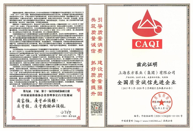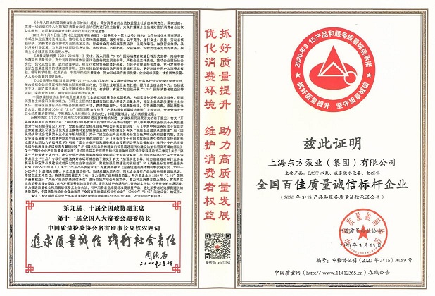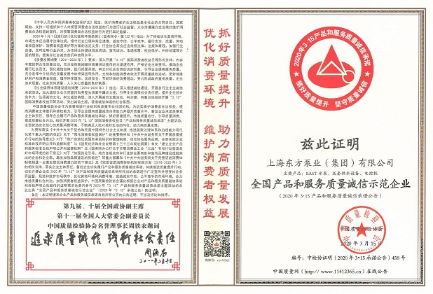 這些榮譽(yù)的獲得,是對(duì)東方泵業(yè)一直以來(lái)堅(jiān)守誠(chéng)信的認(rèn)可。東方泵業(yè)一直把產(chǎn)品品質(zhì)和誠(chéng)信看得很重要。這不僅僅是對(duì)消費(fèi)者負(fù)責(zé),更是對(duì)社會(huì)負(fù)責(zé)。