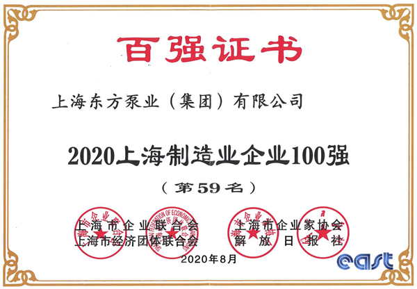 上海東方泵業(yè)(集團)有限公司憑借出色的銷售業(yè)績和良好的社會口碑,通過專家委員會的審定,分別榮獲《2020上海制造業(yè)企業(yè)100強》第59名、《2020年上海民營制造業(yè)企業(yè)100強》第34名。東方泵業(yè)入圍百強榜單,是對東方泵業(yè)經(jīng)營發(fā)展的肯定。未來,東方泵業(yè)將繼續(xù)強化使命與擔當,充分響應國家號召,逆勢而上,穩(wěn)中發(fā)展,秉承“誠信、創(chuàng)新、務實、共贏”的經(jīng)營理念,堅持客戶至上、精益求精的品質(zhì)方針;通過良好的產(chǎn)品和服務,保障用戶生產(chǎn)、生活,促進經(jīng)濟增長,提升人民福祉。為后疫情時代經(jīng)濟持續(xù)健康發(fā)展做出貢獻,再創(chuàng)佳績。